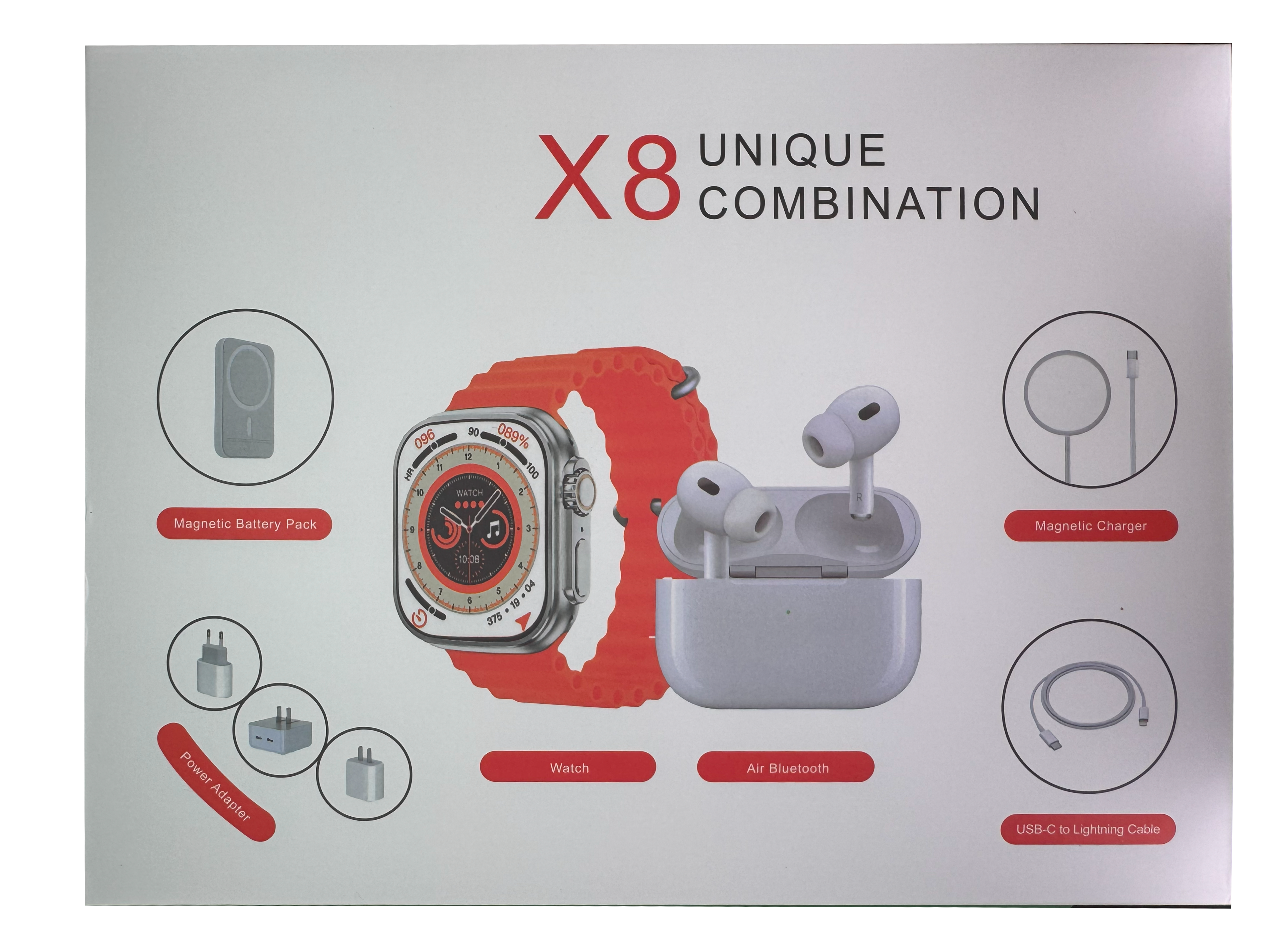 Este pack completo oferece tudo o que você precisa para otimizar seu dia a dia! Inclui um smartwatch moderno para acompanhar sua saúde e produtividade, smartphones de alta performance, uma bateria Magsafe para carregar seus dispositivos com praticidade, cabo iPhone de alta qualidade, carregador USB-C rápido para carregamentos ágeis e um cabo Magsafe para carregamento sem fio com eficiência. Tudo o que você precisa para ter mais conveniência e tecnologia na palma da sua mão!